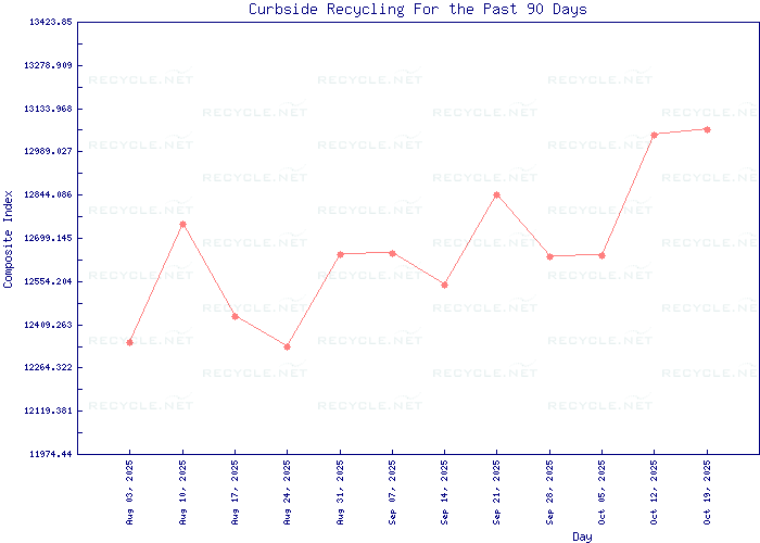 The Curbside Recycling Composite Index tracks the changing market prices of recyclable commodities collected from municipal curbside recycling programs . The Index consists of a weighted basket of specific benchmark grades of scrap curbside materials. The benchmarks include specific grades of scrap glass, paper, plastic and metal. The Index includes snapshots of 5 viewpoints of market trends : the past 7 days, past 30 days, past 90 days, past 1 year and past 2 years.